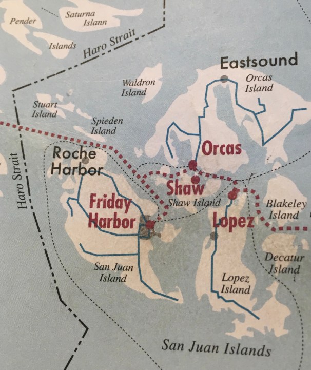 As Writer-in-Residence on the interisland ferry, you’ll find benefits for your creativity and productivity as you ride and write (at no cost) among four Washington State islands in the Salish Sea—San Juan, Orcas, Shaw, and Lopez. You’ll feel freed from timelines and expectations with the gentle movement of the ferry and the ever-changing scenery outside your window. Look up from your keyboard or writing pad to catch glimpses of cormorants, bald eagles, harbor seals, gulls, Madrones, firs, cedars, rocky shorelines, and occasionally, whales.