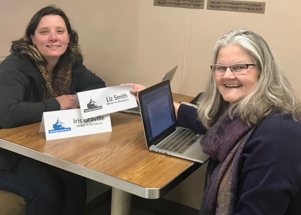 Following a hiatus due to COVID-19, the role of Writer-in-Residence (WIR) on the interisland ferry will resume again in January 2024. Lopez Island resident Iris Graville (right) developed the residency and served as the first WIR in 2018 (visit her blog posts from her term at www.writingtheinterisland.org.). The second WIR, from 2019-2020, was San Juan Island writer Liz Smith (left).